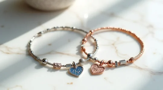 Concernant l’entretien, certaines personnalisations comme l’émail coloré requièrent des précautions spécifiques : éviter les chocs thermiques, les produits chimiques agressifs, et nettoyer uniquement avec un chiffon doux. Les gravures profondes peuvent accumuler résidus et poussières, nécessitant un nettoyage régulier avec une brosse souple. Enfin, la sécurité des attaches mérite une attention particulière lors de l’accumulation de bijoux : un fermoir fragile sur un bracelet chargé de breloques augmente significativement le risque de perte. Privilégiez des systèmes de fermeture robustes, proportionnés au poids total de la pièce.