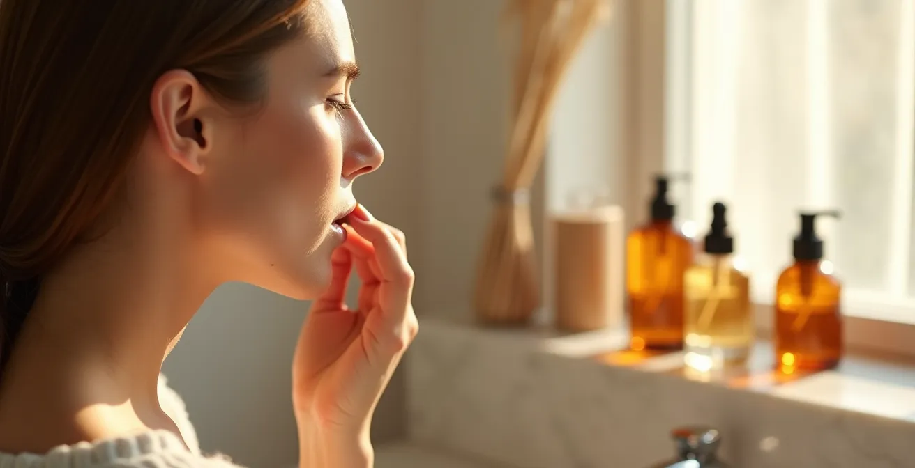 - Nettoyage à l’huile : Sur visage sec, massez une huile ou un baume démaquillant pendant au moins 60 secondes, en insistant sur les zones où le maquillage s’accumule.